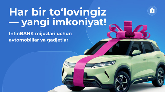 InfinBANK автомобиллар ва замонавий гаджетлар ўйналадиган кенг кўламли акцияни бошладиInfinBANK бир йил давом этадиган «Тўланг, сўндиринг ва ютиб олинг!» номли кенг кўламли акцияга старт берилганини эълон қилади. Акция доирасида мижозлар замонавий гаджетлардан бошлаб янги автомобилларгача бўлган қимматбаҳо совғаларни ютиб олишлари мумкин.